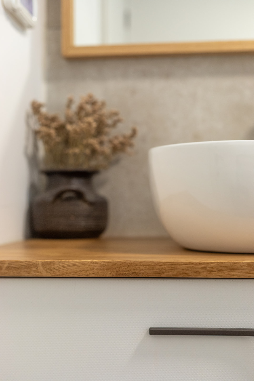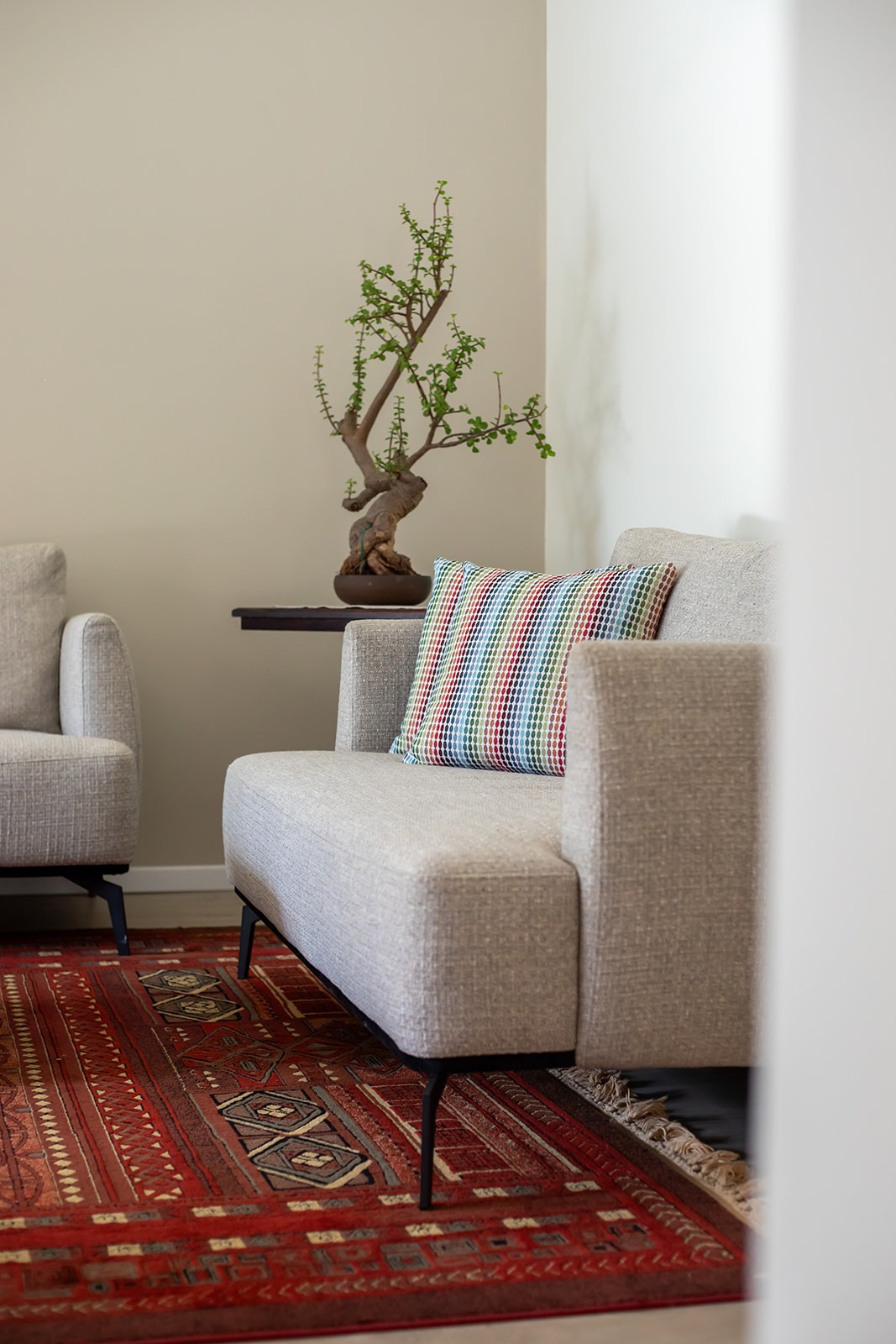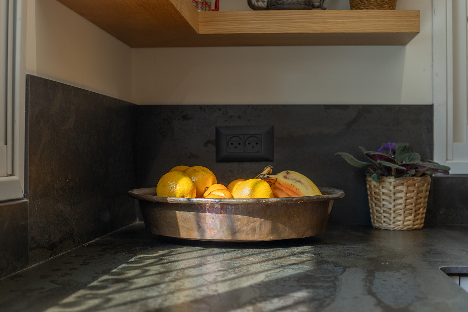 הפרויקט הזה היה כל כך מיוחד – ללוות זוג שכבר עבר לא מעט בחיים, ועכשיו החליט שהגיע הזמן להשקיע בבית חלומותיו. הילדים התבגרו ועזבו את הקן, אבל הנכדים מגיעים (ועם חיוך גדול!), ויחד עם זוגות חברים הם יוצרים בית שמתמלא באוכל טוב, יין משובח ואומנות שנעשית גם על ידם – וכל כך משמעותית עבורם.